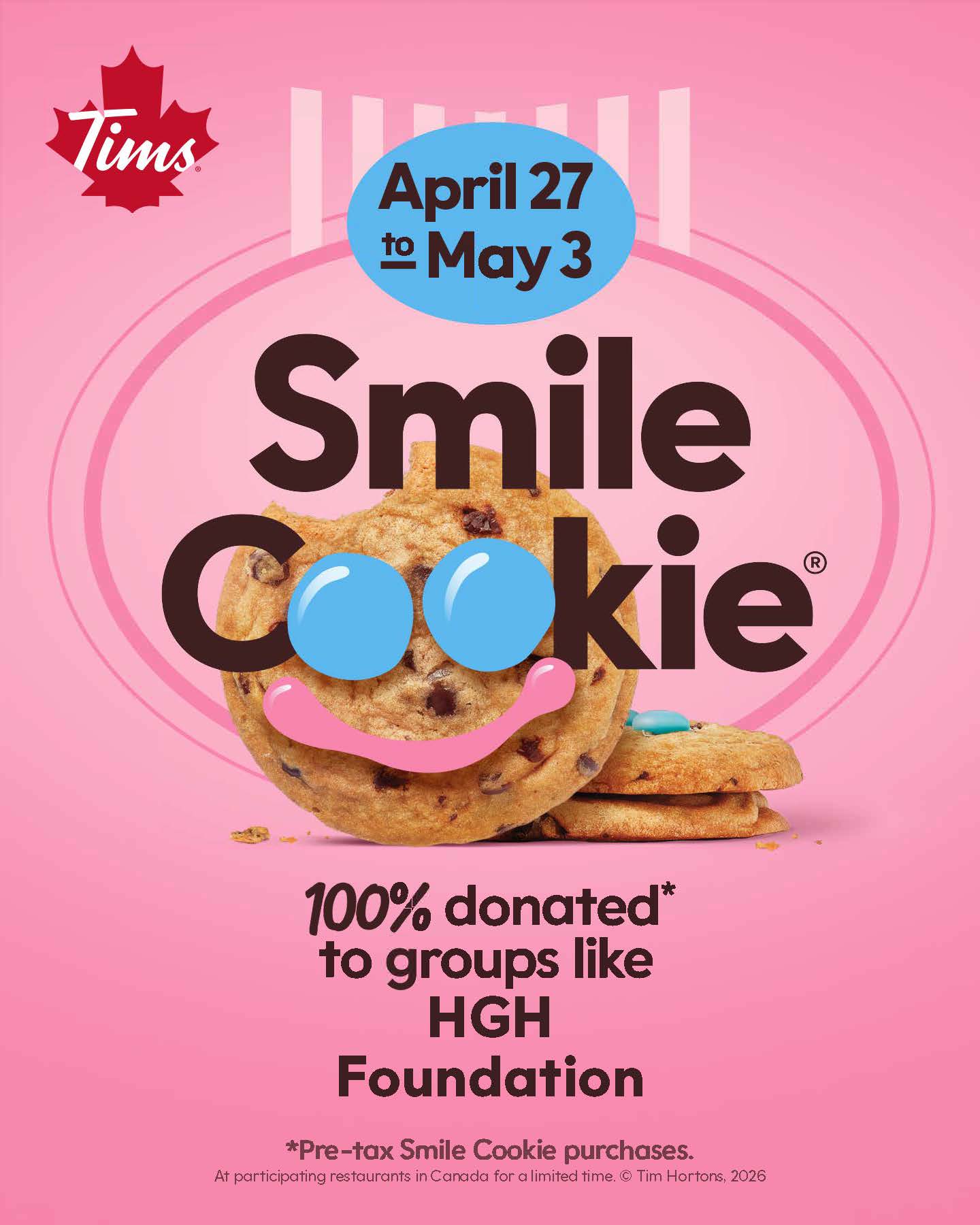 Buy a Smile Cookie from April 27th to May 3rd at a local Tim Hortons® Restaurant and support the HGH Foundation!