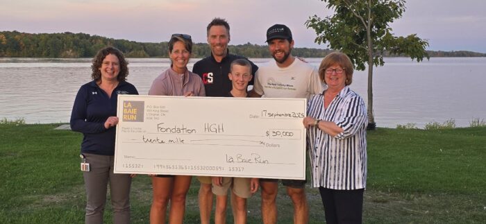 Pictured in the attached cheque presentation photo are (from left to right): Erin Tabakman (Executive Director, HGH Foundation), along with the organizing Committee of La Baie Run – Marie-Eve Yelle (Desjardins Groupe Yelle Moore), Sébastien Lalonde (CS timing Solutions), Thomas Lalonde, and Patrick Lalonde (Lalonde Physio), as well as Ginette Labelle (Board Member, HGH Foundation).